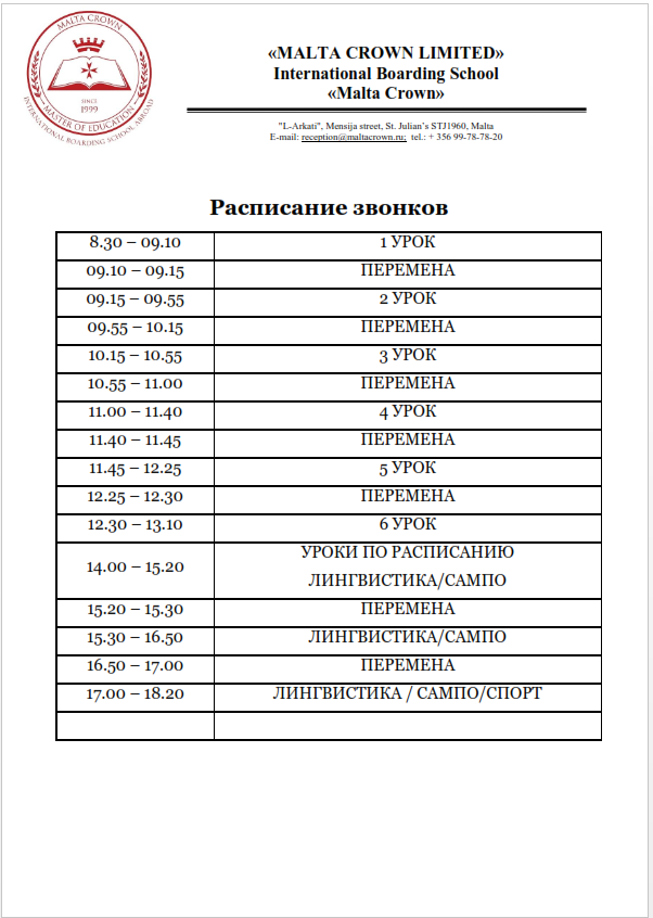 Расписание звонков